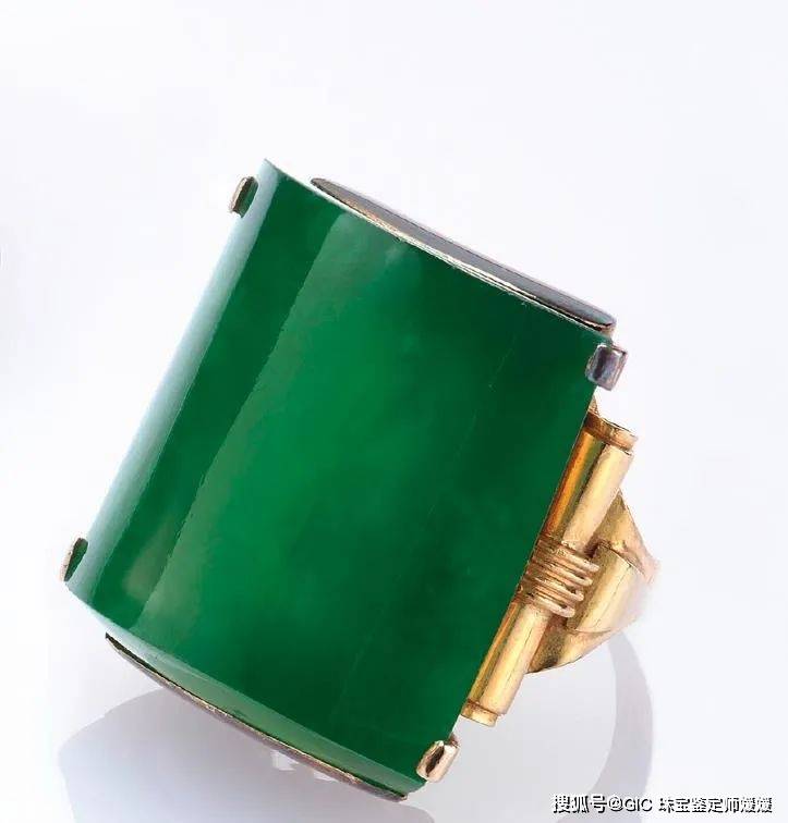 另一件令人瞩目的拍品是弧形平安牌戒指,外形与翡翠扳指类似,但其风格独特,设计超前,且绿色的翡翠通透度极高,极为罕见。这件戒指以1324万港元的高价成交,显示出其非凡的价值和魅力。
