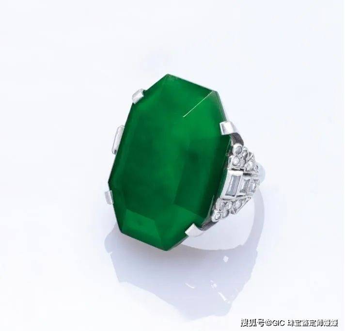 其中,一枚宝石切割面的翡翠戒指成为了拍卖会的明星拍品。这种宝石切割面翡翠早在民国时期就已存在,这枚戒指独具一格,戒臂上镶嵌了钻石,复古而经典的款式令人着迷。最终,这枚翡翠戒指以1804万港元的价格成交,远超估价的28倍,除了翡翠本身的价值,孔祥熙家族的历史背景无疑也让其成为了极具收藏价值的珍品。