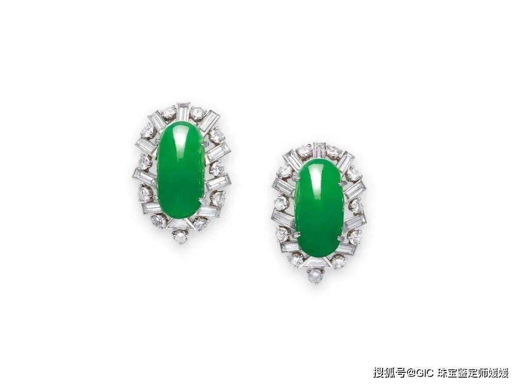 还有一对极具现代感的翡翠双环耳坠,其设计与当代风格相似,钻石的搭配巧妙且精致,最终以268万港元成交。而一对椭圆形蛋面翡翠耳环,虽然是由卡地亚设计并镶嵌,但却展现出极具时尚感的经典设计,成交价为208万港元。