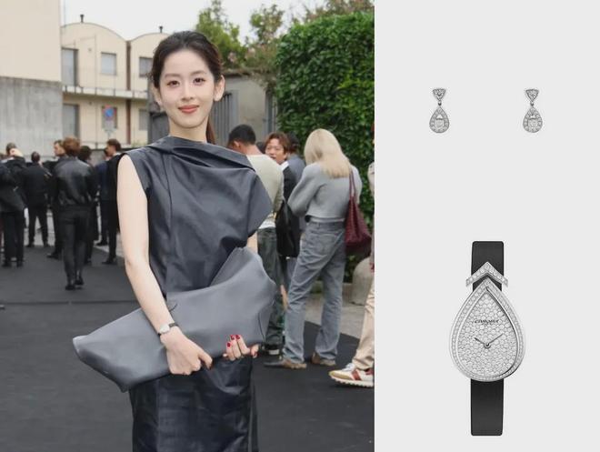 CHAUMET也是她的爱牌之一,在时装周穿Tods看秀就搭配了约瑟芬系列腕表、耳钉,水滴造型给人温婉的感觉。