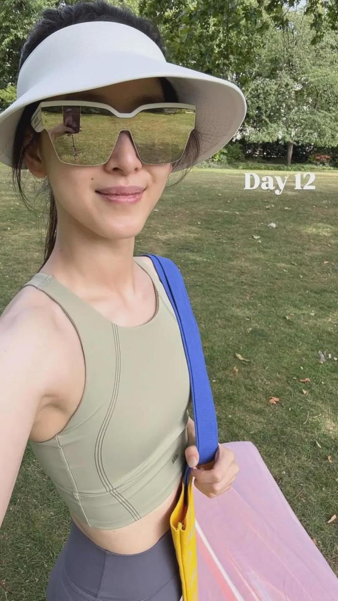 章泽天还搭配了Sweaty Betty印花瑜伽裤,Columbia亮色防滑鞋,也是符合穿搭要义:上身基础,下身就不基础。