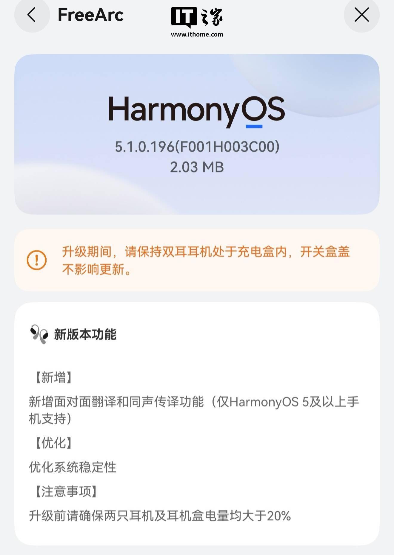 IT之家 10 月 28 日消息,据用户反馈,华为首款开放式耳挂耳机 FreeArc 已开启鸿蒙