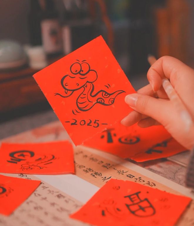 五千年华夏文明,有一个字贯穿始终。那就是“福”字,写“福”字是中国新年必不可少的重要习俗,一撇一捺、墨起笔落在红色卡纸上,自制一张蛇年喜气的趣味福字。