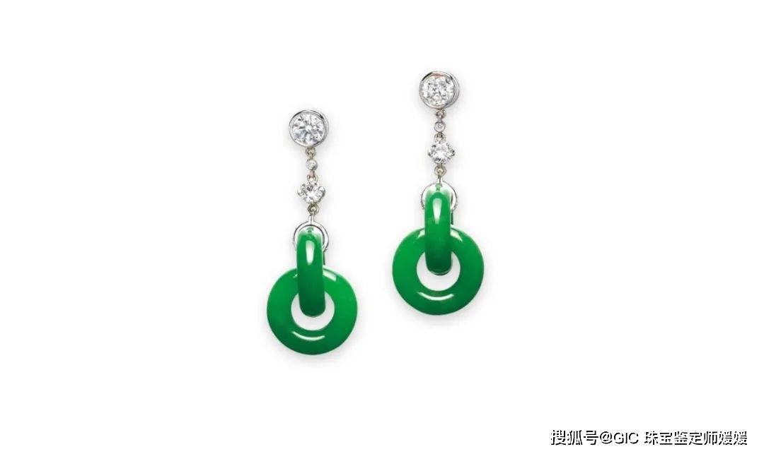 还有一对极具现代感的翡翠双环耳坠,其设计与当代风格相似,钻石的搭配巧妙且精致,最终以268万港元成交。而一对椭圆形蛋面翡翠耳环,虽然是由卡地亚设计并镶嵌,但却展现出极具时尚感的经典设计,成交价为208万港元。