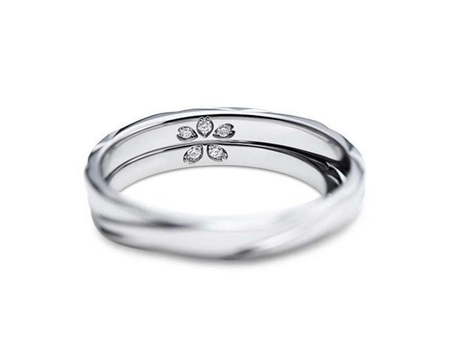 在众多设计中,名为“CHLORIS”的结婚对戒尤为令人心动。它的设计灵感源于春天里盛放的樱花,寄托了对新人美好生活的祝福。从侧面细细观赏,可以清晰地看见由五瓣花瓣组成的樱花造型,戒环上富有韵律感的柔美曲线,是工匠运用精湛的锻造技术精心打造而成,实现了锐利线条与温暖质感的完美平衡。这不仅仅是一枚戒指,更是一件掌间的艺术品。最为精妙的是,当男女两枚戒指叠合在一起时,内圈的配钻会悄然拼成一朵完整的樱花图案,宛如春天里最温柔的那个吻,甜蜜而隐秘,象征着独属于两个人的心有灵犀。这份独具匠心的设计,让“CHLORIS”成为无数新人心中无可替代的梦想之选。